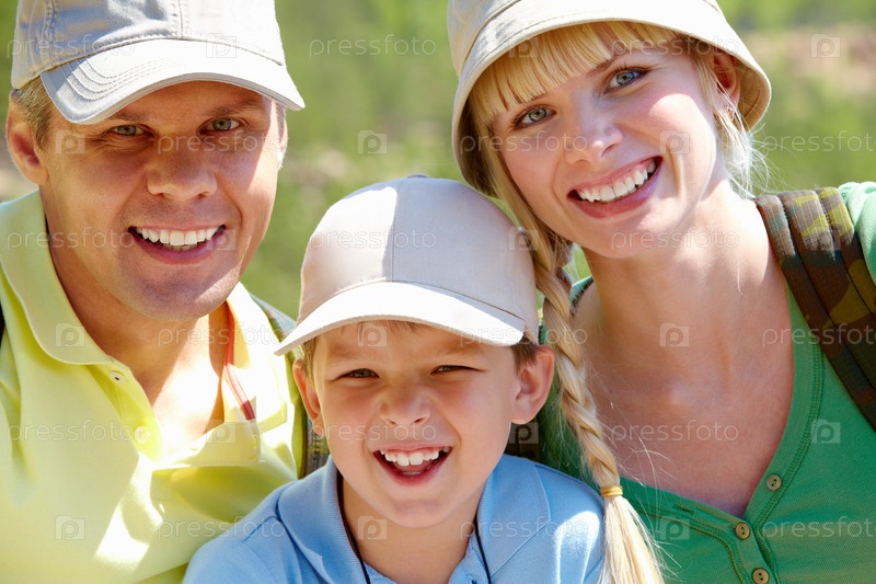 Счастливая семья путешественников крупным планом