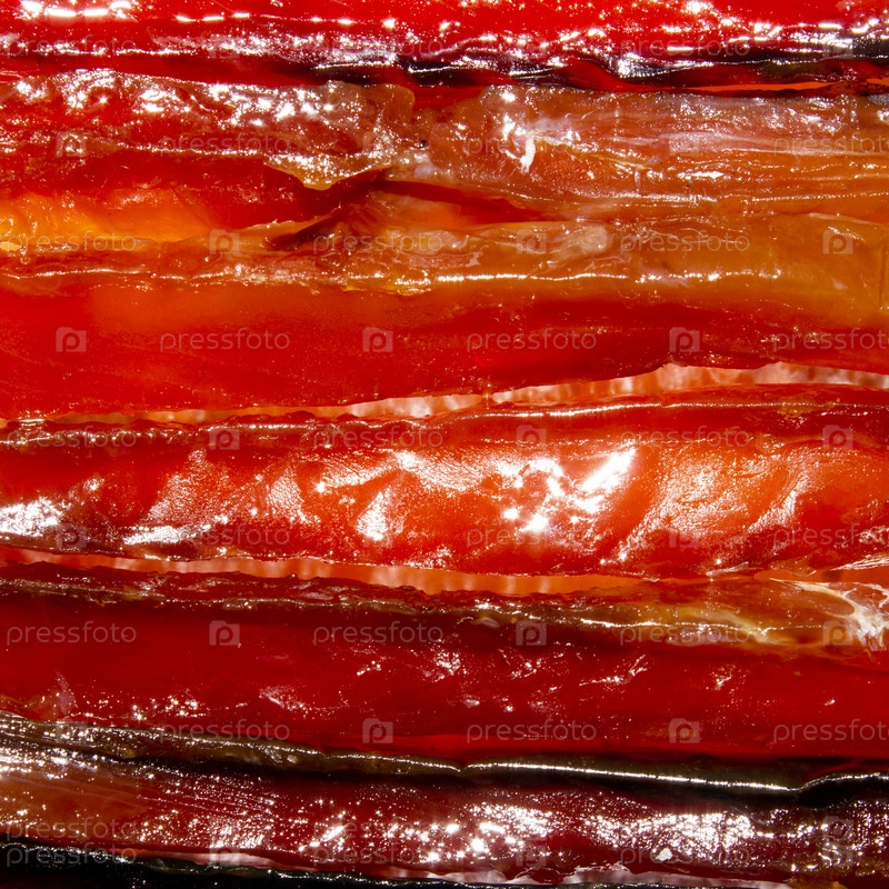 Сушеная красная рыба. Лосось вяленый фон. Сушеная, очищенная рыба