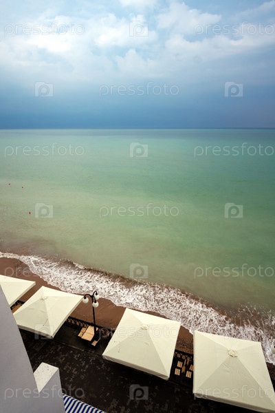 Вид на западную сторону Черного моря от комплекса Наш парус в Каче западный Крым