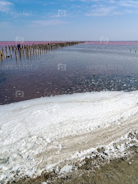 Широкоугольная панорама розового озера Сасык-Сиваш
