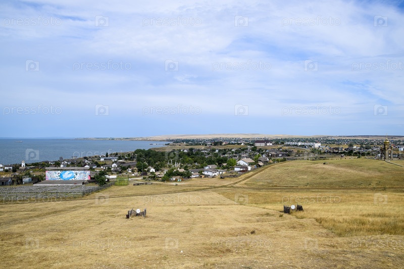 Пейзаж на станице – музей атамана. деревня и вид на море с высоты холма