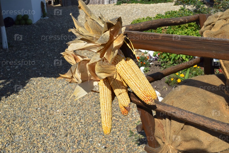 Висячие початки желтой кукурузы