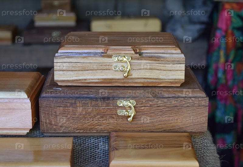 Деревянные ящики на прилавке
