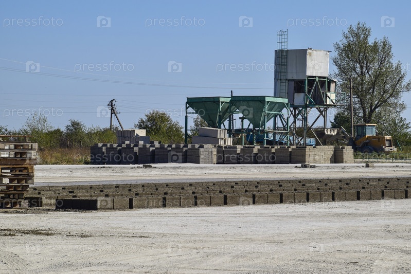 На заводе по производству шлакоблоков. Машины и продукция завода