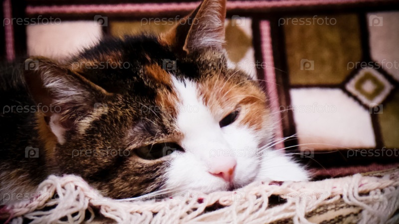 Трехцветная кошка крупным планом