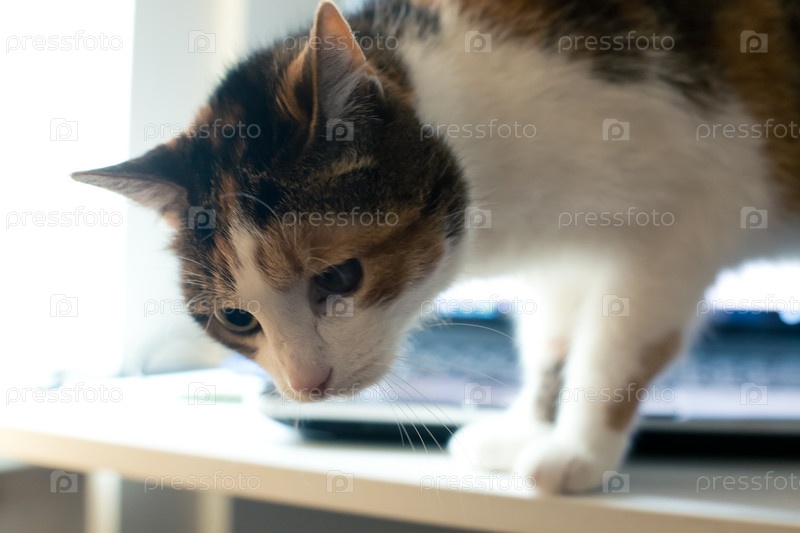 Трехцветная кошка крупным планом