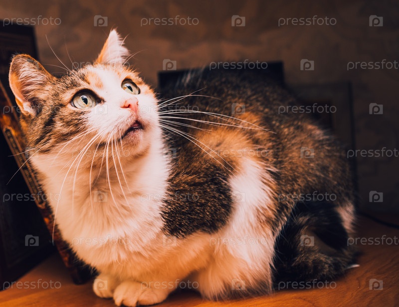 Трехцветная кошка крупным планом