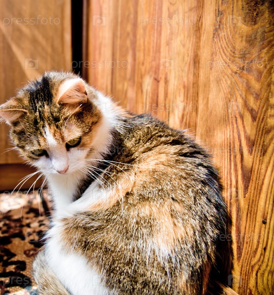 Трехцветная кошка крупным планом
