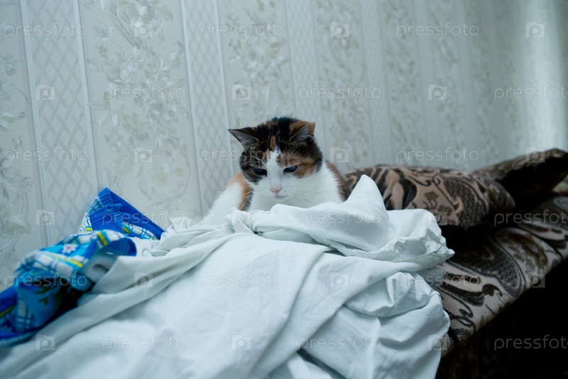 Трехцветная кошка крупным планом