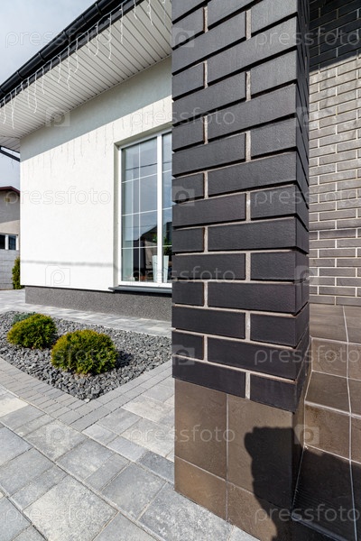 Фрагмент современного здания, облицованного декоративным кирпичом в старинном стиле