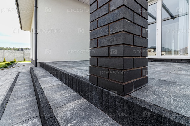 Фрагмент современного здания, облицованного декоративным кирпичом в старинном стиле