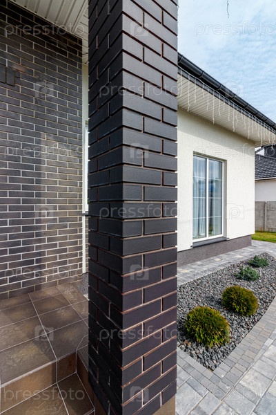 Фрагмент современного здания, облицованного декоративным кирпичом в старинном стиле