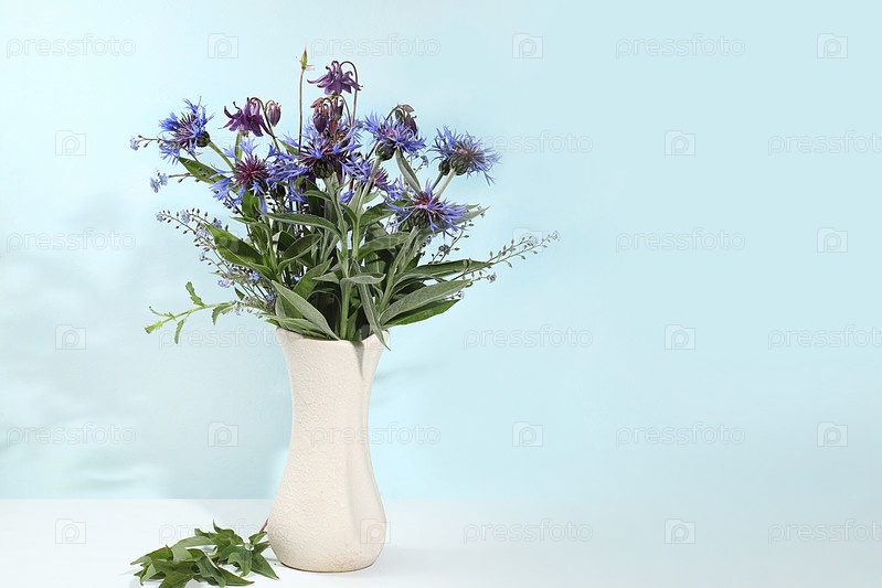 Домашний интерьер с элементами декора, красивый колокольчик диких полевых цветов в вазе на светлом фоне, абстрактная цветочная композиция, натюрморт с местом для текста, цветочная открытка на день рождения, свадьба, выборочный фокус, цветочный фон
