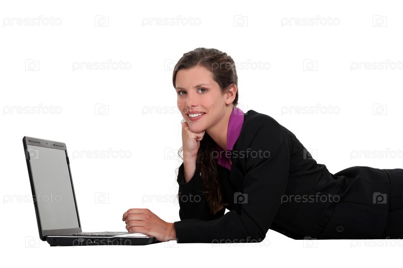 Женщина использует свой ноутбук