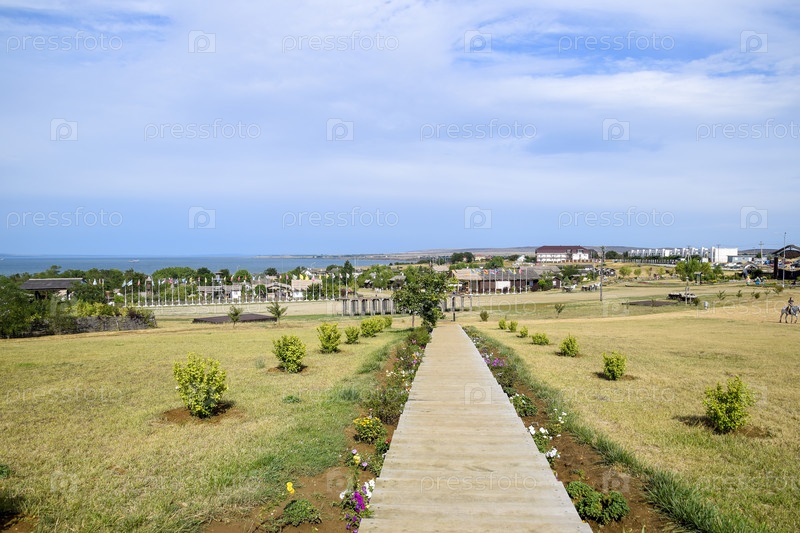 Пейзаж на станице – музей атамана. деревня и вид на море с высоты холма