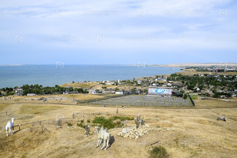Пейзаж на станице – музей атамана. деревня и вид на море с высоты холма