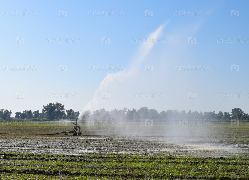 Система орошения в области бахчевых культур. Полив полей. Разбрызгиватель