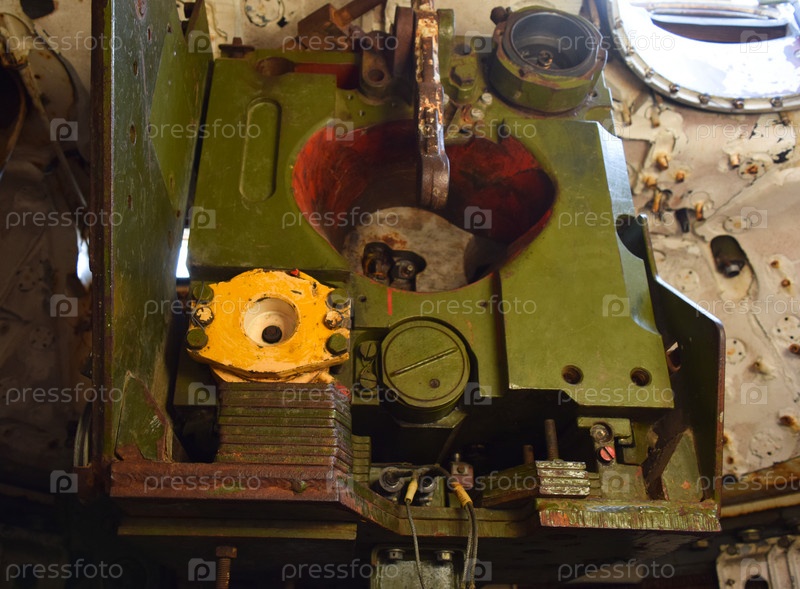 Машины и детали внутри кабины танка. Музейный экспонат