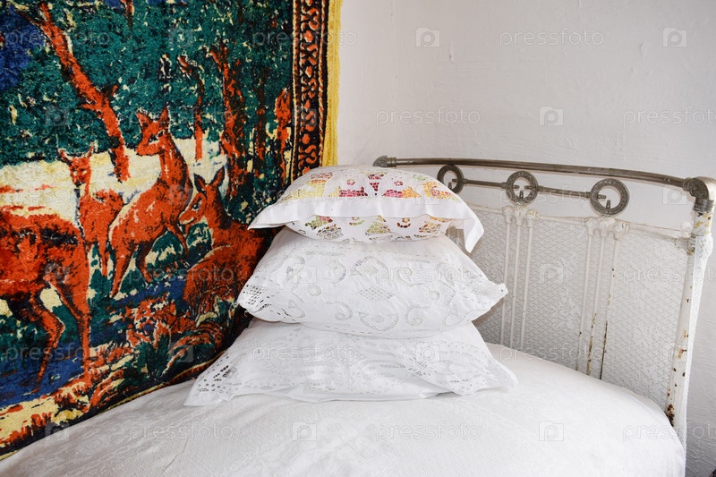 Интерьер казачьего дома. Спальня Казачья кровать с подушками