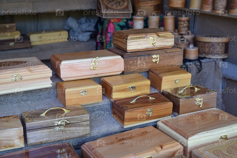 Деревянные ящики на прилавке