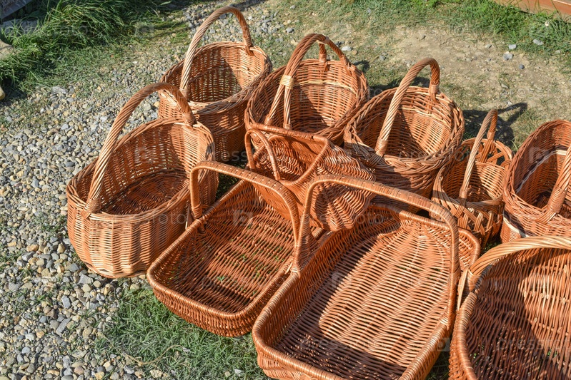 Несколько плетеных корзин на земле