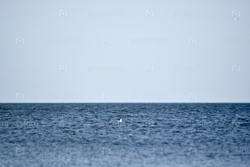Морская линия горизонта. Море и небо. Волны и блики солнца отражаются от морских волн. Морской пейзаж