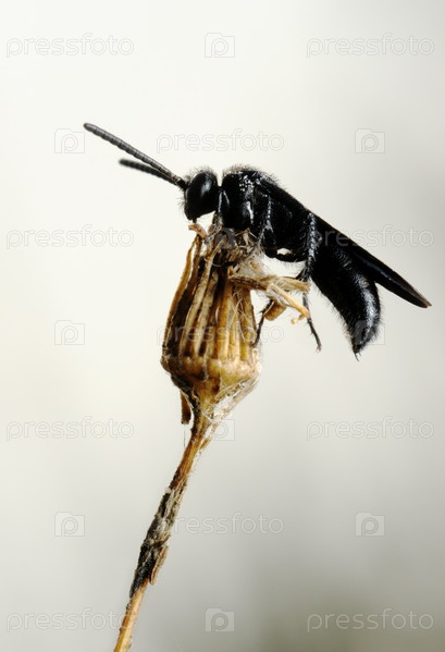Маленькая черная пчела на сухом растении, Израиль