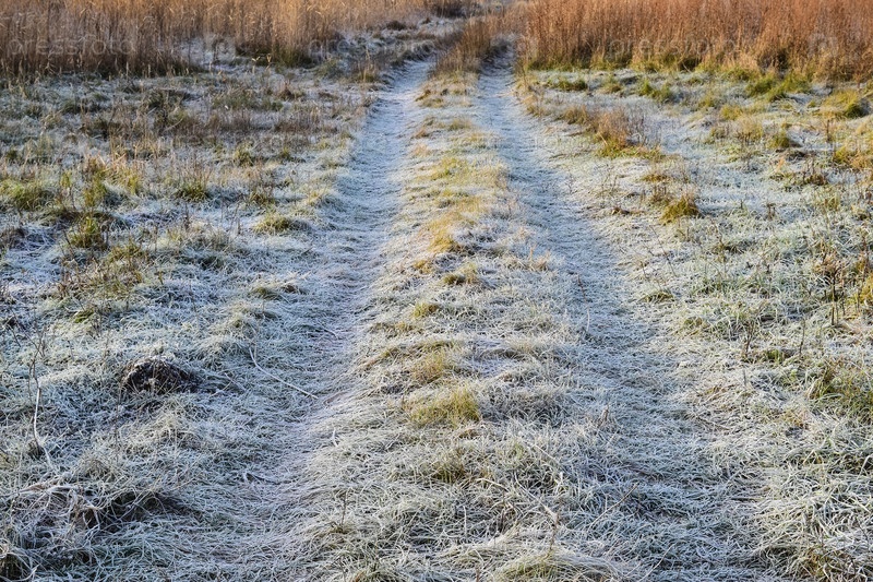 Дорога по замерзшей траве. Мороз на дороге