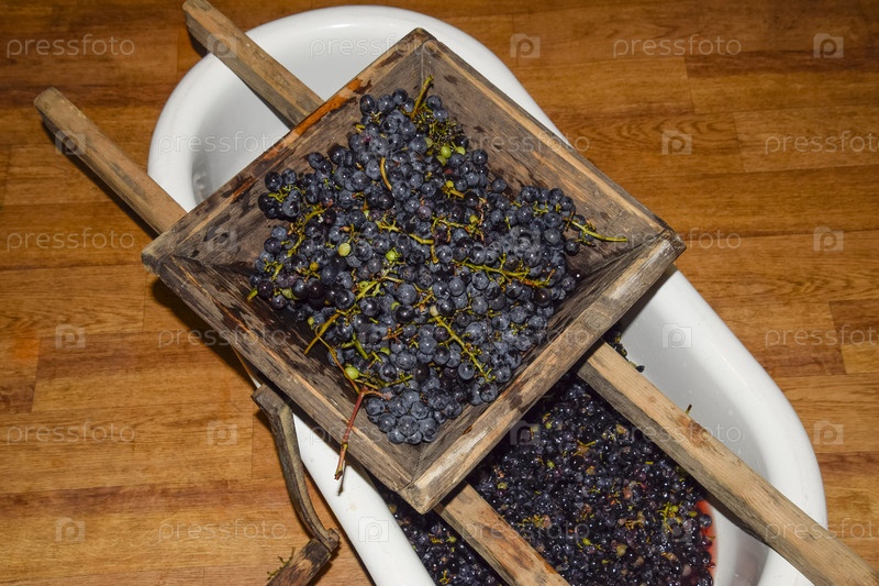 Ручной механизм для дробления винограда. Измельчите виноград в сок и вино