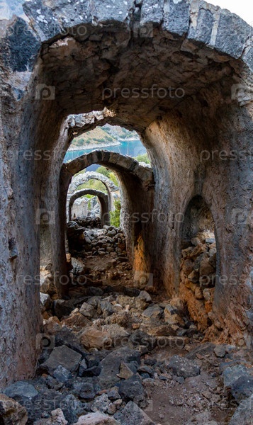 Древняя полуразрушенная аркада на острове Гемилер (Святого Николая) в Эгейском море