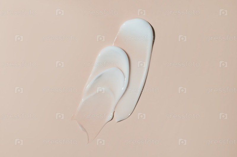 Текстура белого косметического крема, образец лосьона для ухода за кожей на пастельном фоне. Крем для лица, увлажняющий крем для тела, мазок кондиционера для волос. Сливочный косметический продукт крупным планом