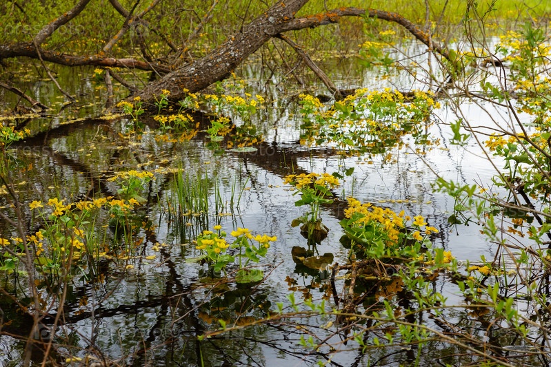 Цветение болотных календул