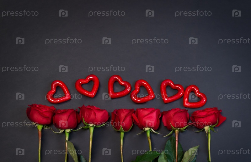Граница из красных роз и красных сердец на темном фоне