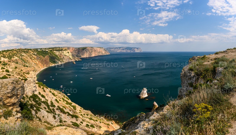 Панорамный вид на море и горы. Красивый вид с мыса Фиолент в Крыму