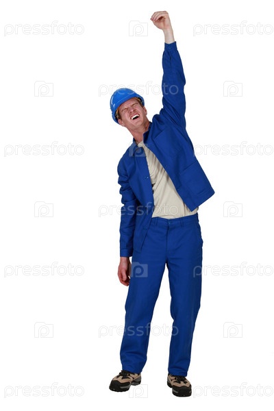Работник поднял кулак в воздух