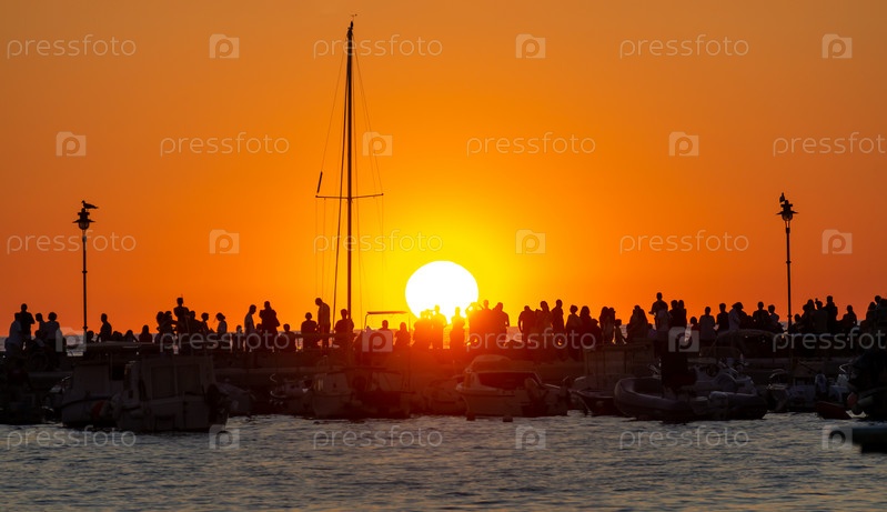 Закат на причале – яхтсмены и туристы провожают солнце