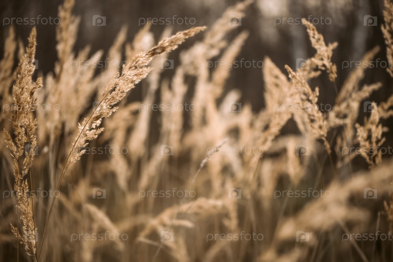 Сушеная тростниковая трава в солнечном свете на размытом фоне