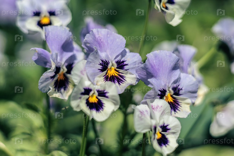 Цветы анютиных глазок в саду в солнечный летний день