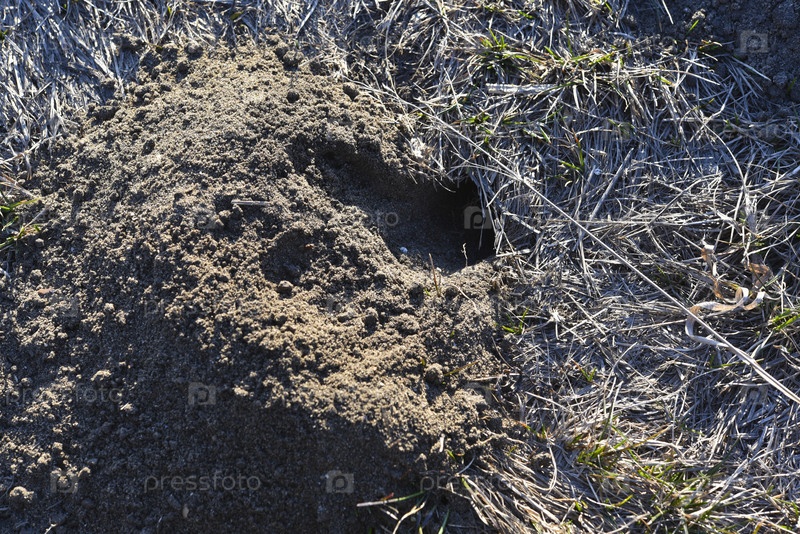 Дырка в земле. Нора сурка в поле
