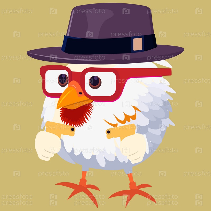 Петух. петушок с очками и шляпа с пистолетами. персонаж для игры. логотип. икона, иллюстрация