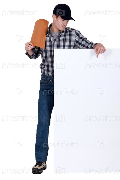 Кровельщик указывает на доску для вашего сообщения