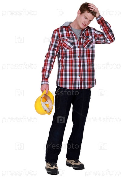 Дабочий с каской держится за голову