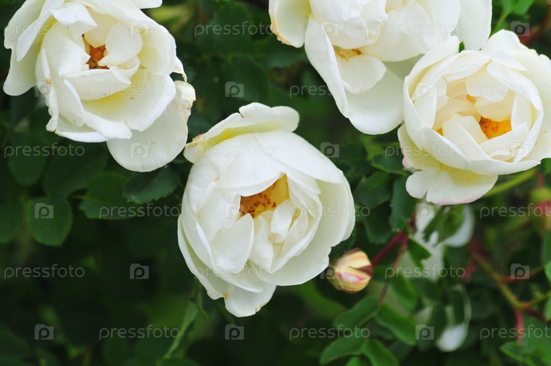 Белые розы, бутоны крупным планом