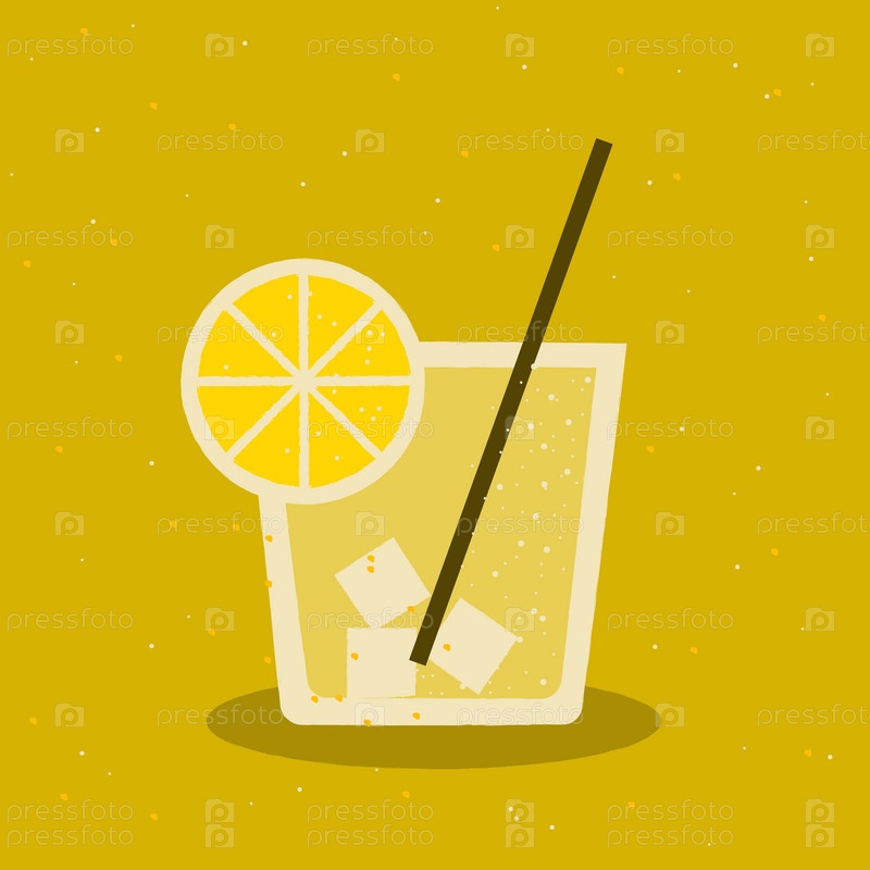 Лимонный напиток в стакане со льдом. Иллюстрация в ретро стиле