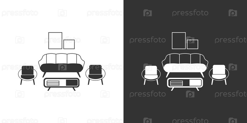 Иконка мебели гостиной. Черная и белая