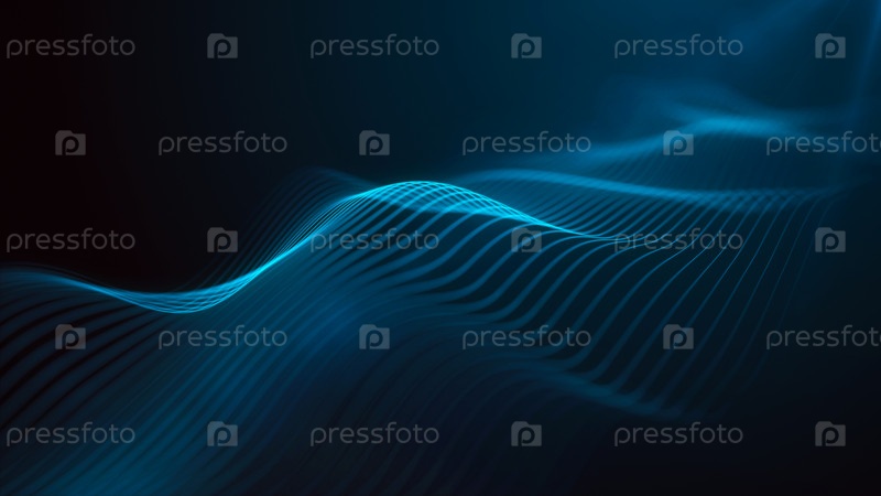 Футуристическая волна синих линий. Цифровой поток данных. Концепция больших данных. Подключение к сети. Кибернетика и технологии. Абстрактный темный фон. 3d визуализация