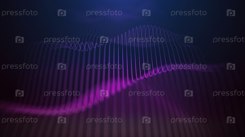 Футуристическая музыкальная волна фиолетовых линий. Цифровой поток данных. Концепция больших данных. Подключение к сети. Кибернетика и технологии. Абстрактный темный фон. 3d визуализация