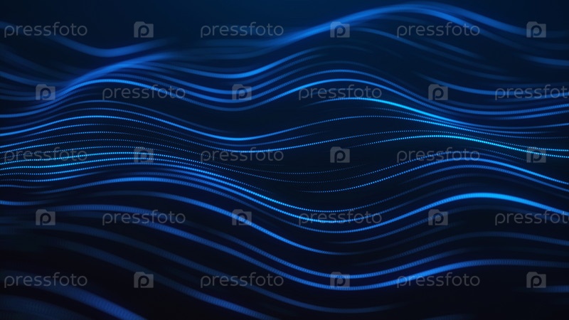 Футуристическая волна линий. Цифровой поток данных. Концепция больших данных. Подключение к сети. Кибернетика и технологии. Абстрактный темный фон. 3d визуализация