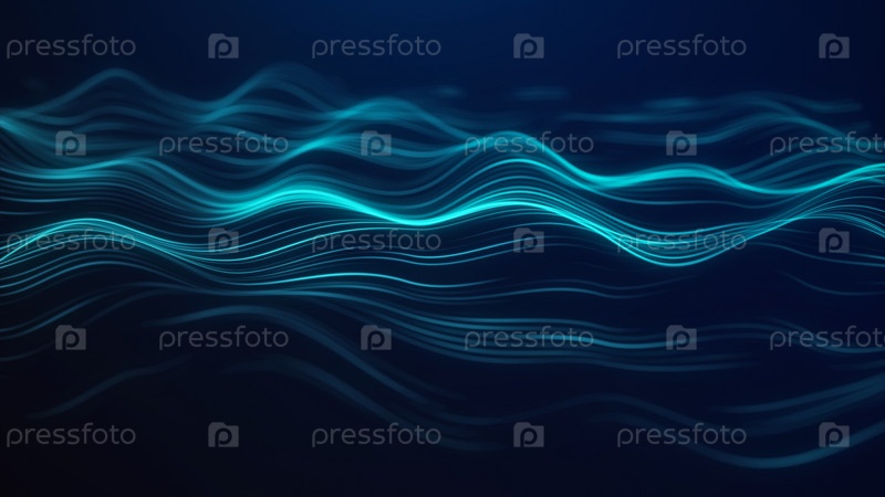 Футуристическая волна линий. Цифровой поток данных. Концепция больших данных. Подключение к сети. Кибернетика и технологии. Абстрактный темный фон. 3d визуализация