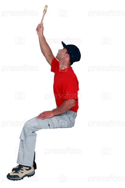 Маляр красит потолок